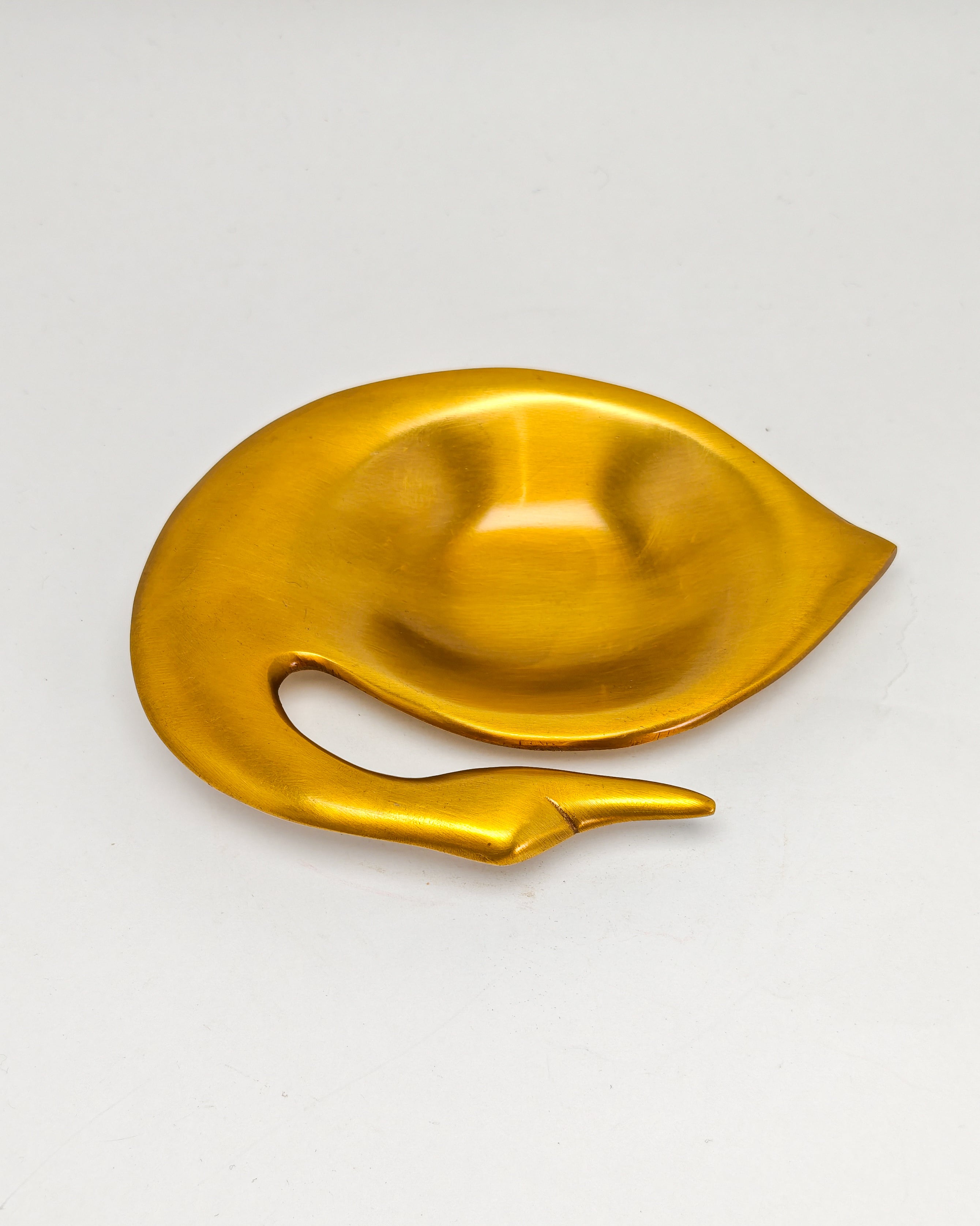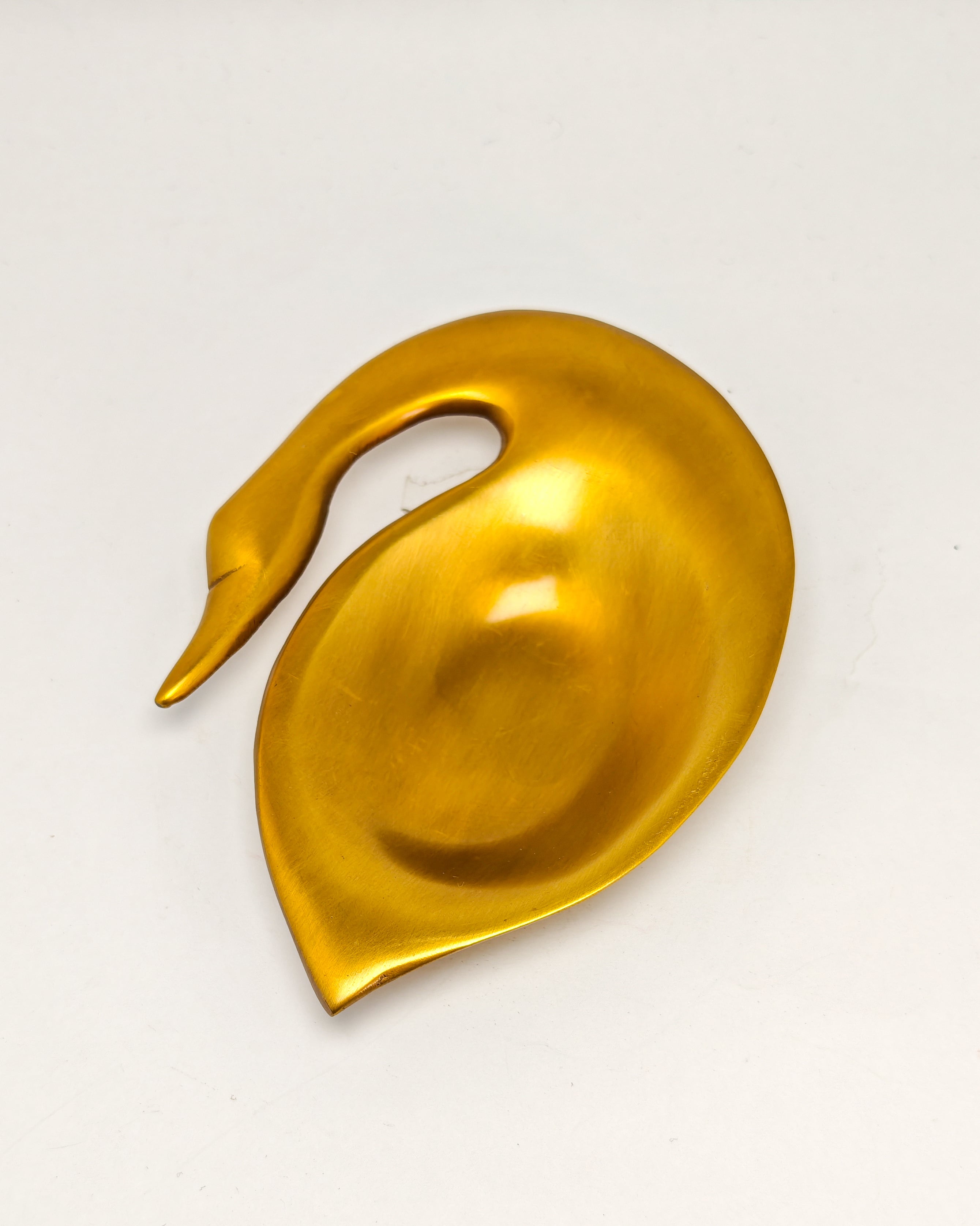 白鳥をモチーフにした真鍮製のトレイ。やわらかく丸みを帯びた造形で、どこかクラシカルで愛らしい佇まいが魅力です。アクセサリーや鍵、小物を置くトレイとして、またはオブジェとしても活躍します。経年による真鍮の風合いも、ヴィンテージらしい味わいとしてお楽しみいただけます。