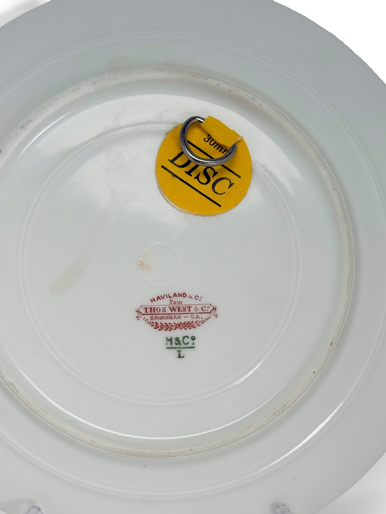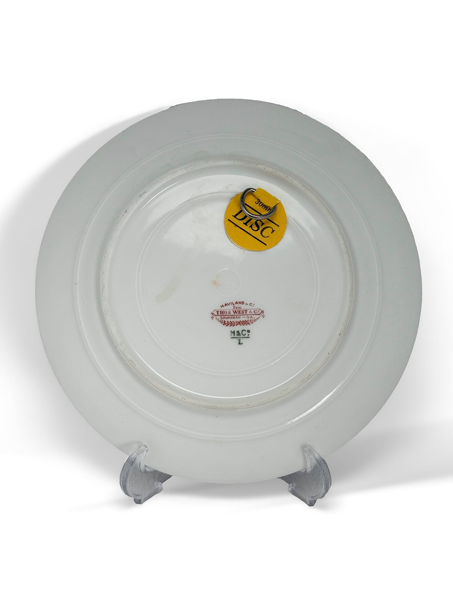 本体はTHOS. WEST & Co. 向けの別注品と見られ、繊細な花模様の転写と、手描きによる縁取り装飾が施されたクラシカルな一枚。