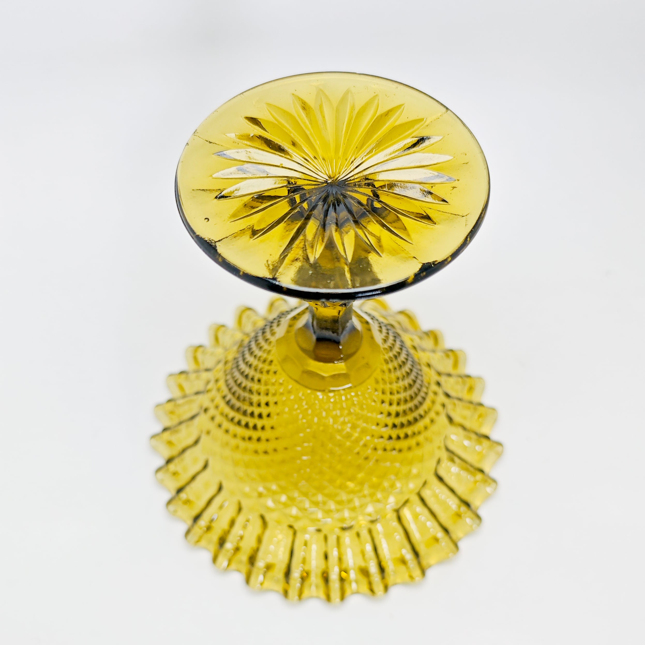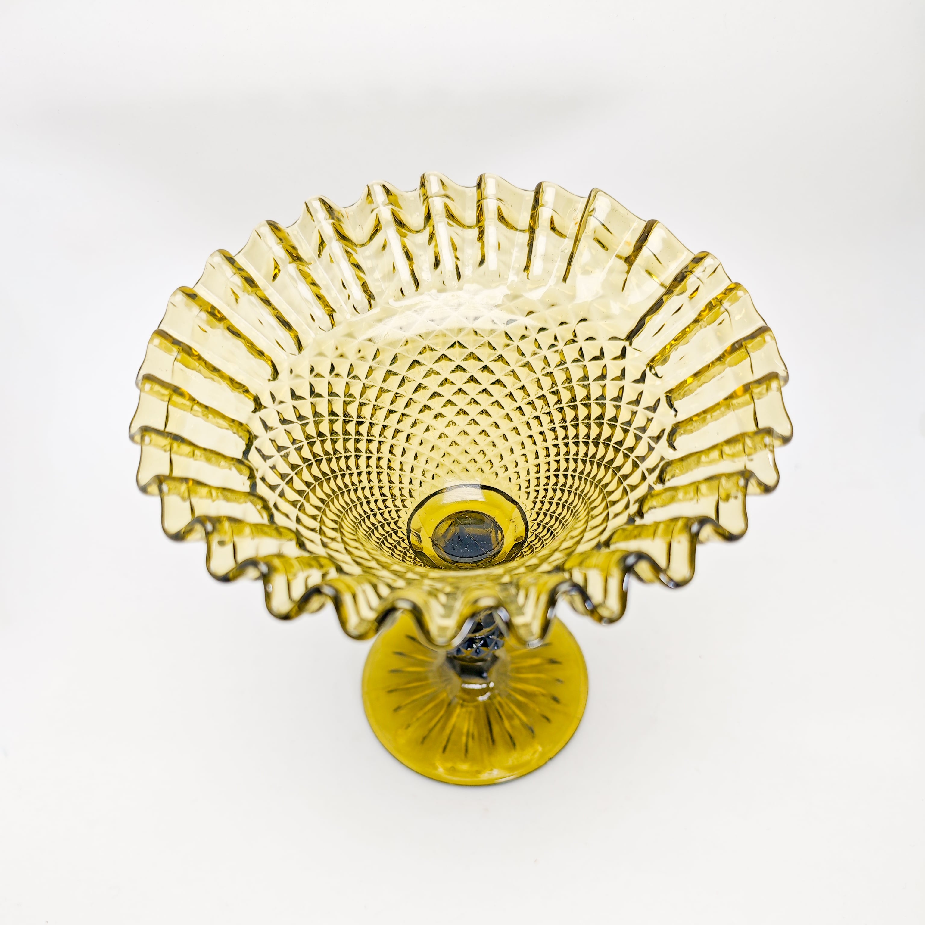 イギリスのアンティークガラスらしい、フリル状の縁とダイヤカット模様が美しいフット付きコンポート。