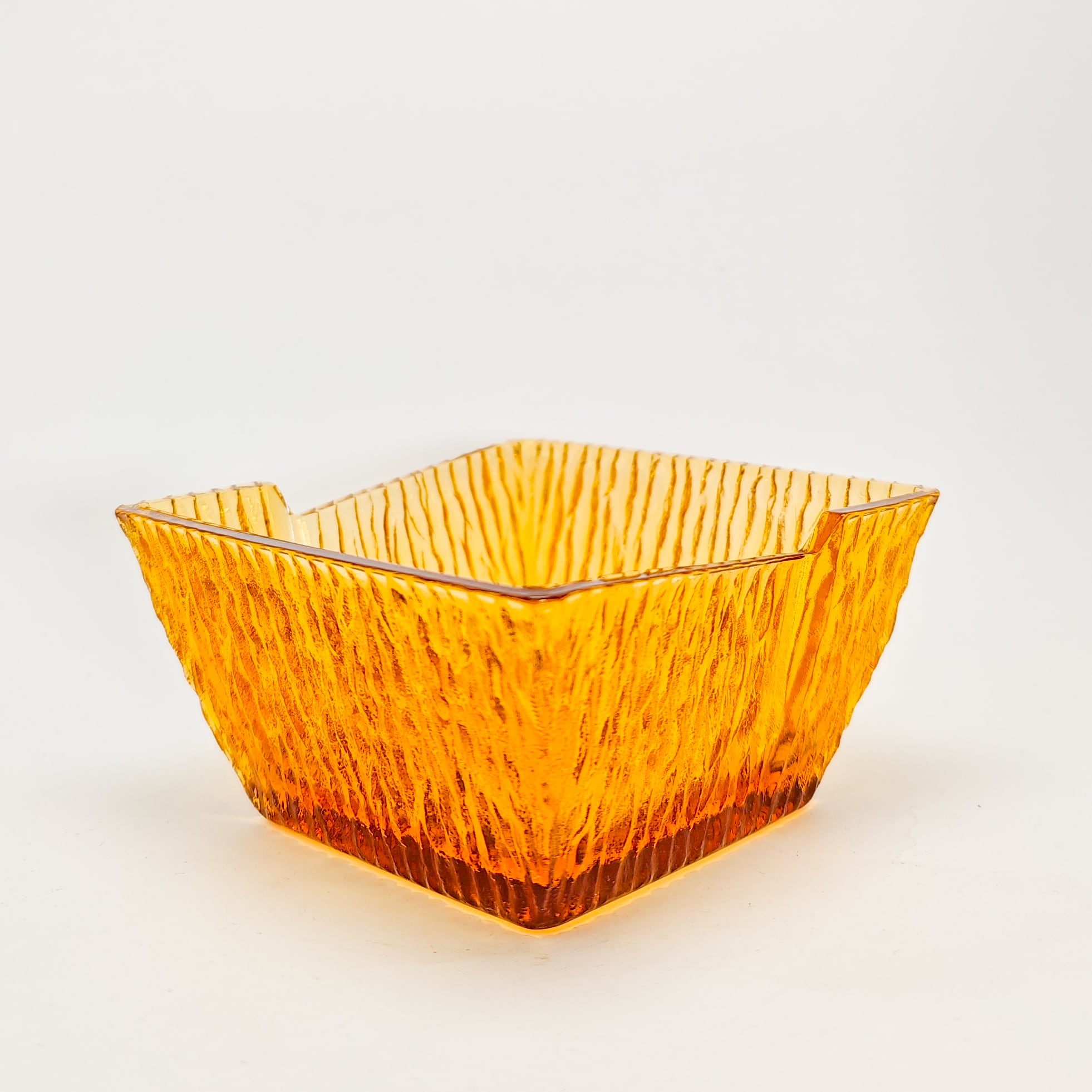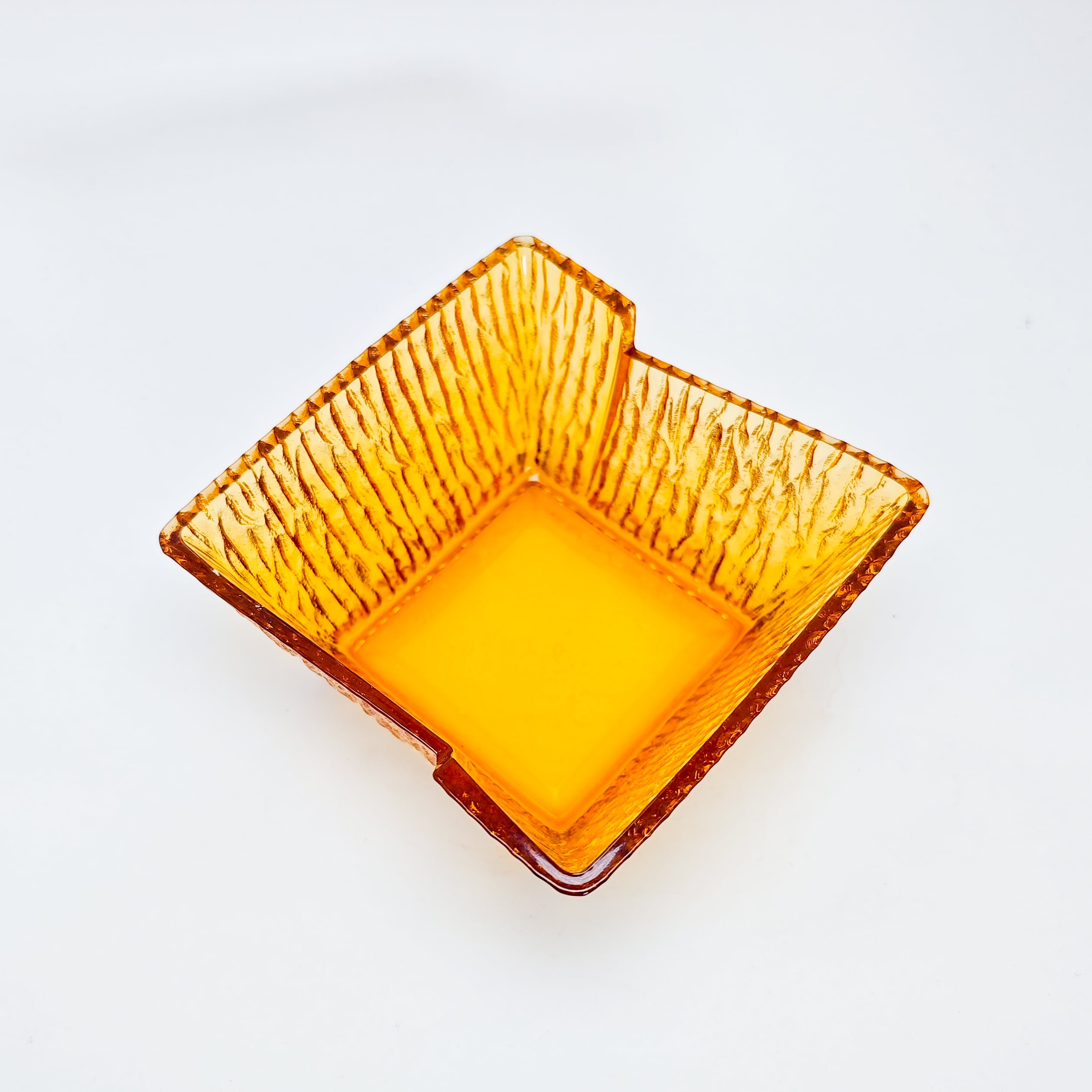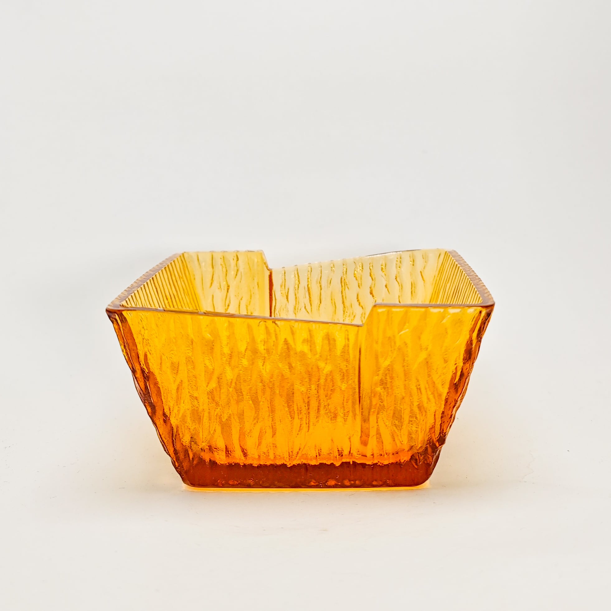 温かみのあるアンバーカラーが印象的な、スクエア型のガラスボウルです。
