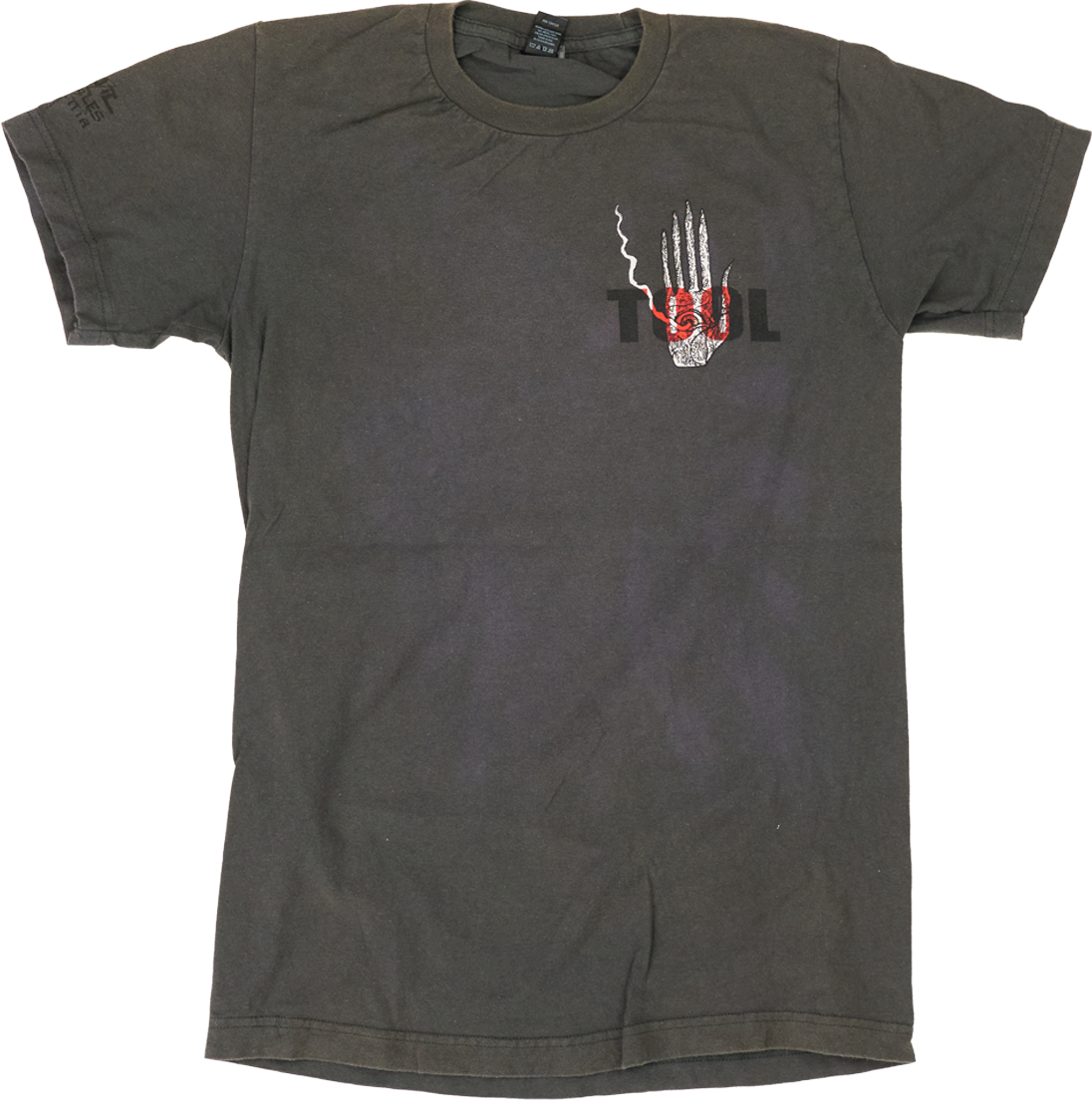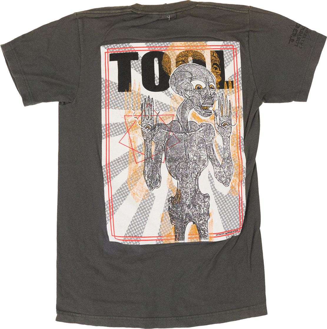 TOOLのアートワークが映えるバンドTシャツ。フロントは左胸に小さめのロゴ&グラフィック、バックはインパクトのある大型プリントで、1枚で主役になるデザインです。全体に程よいフェード感があり、雰囲気の良い仕上がりです。