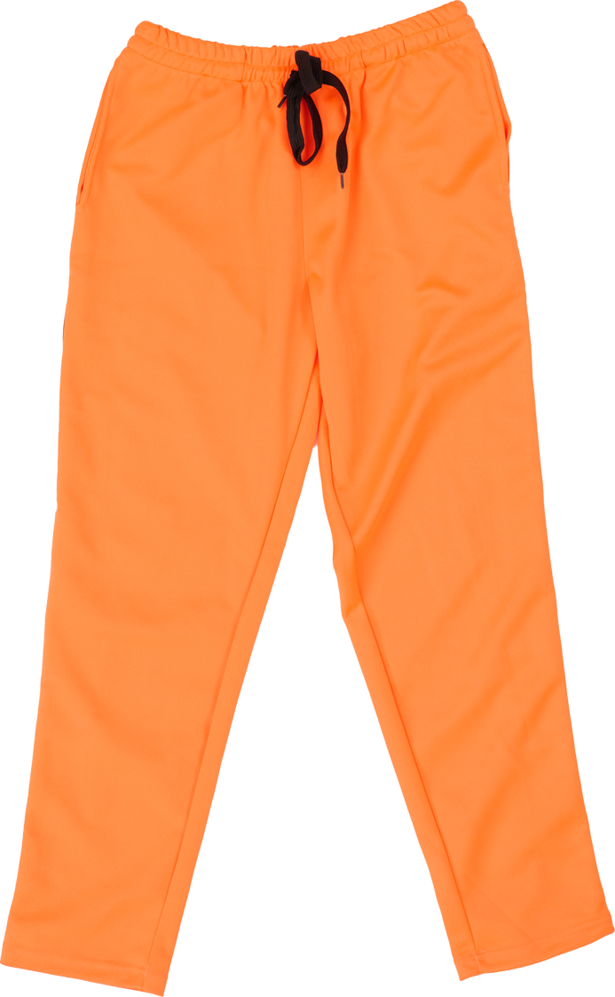 ビビッドなネオンオレンジカラーが目を引く、サイド3本ライン仕様のトラックパンツです。
