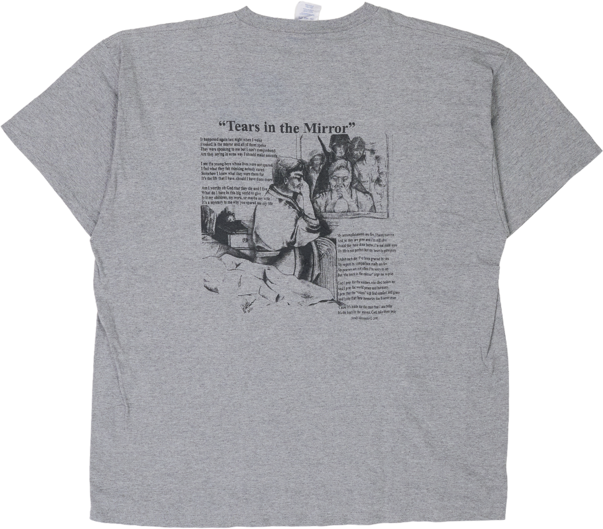 2005年コピーライト入り、Sandy Alexanderによるメッセージ性の強いメモリアルグラフィックTシャツ。