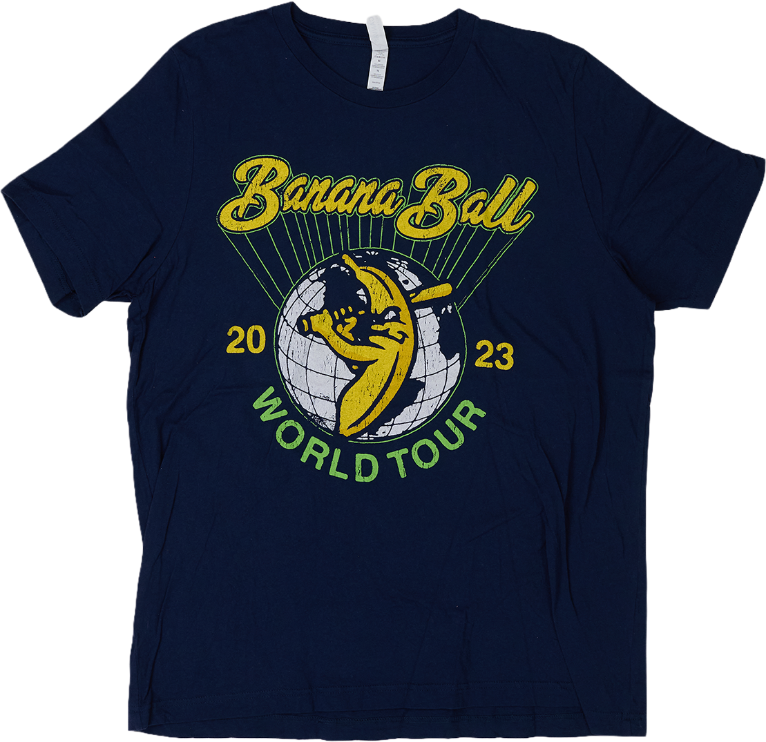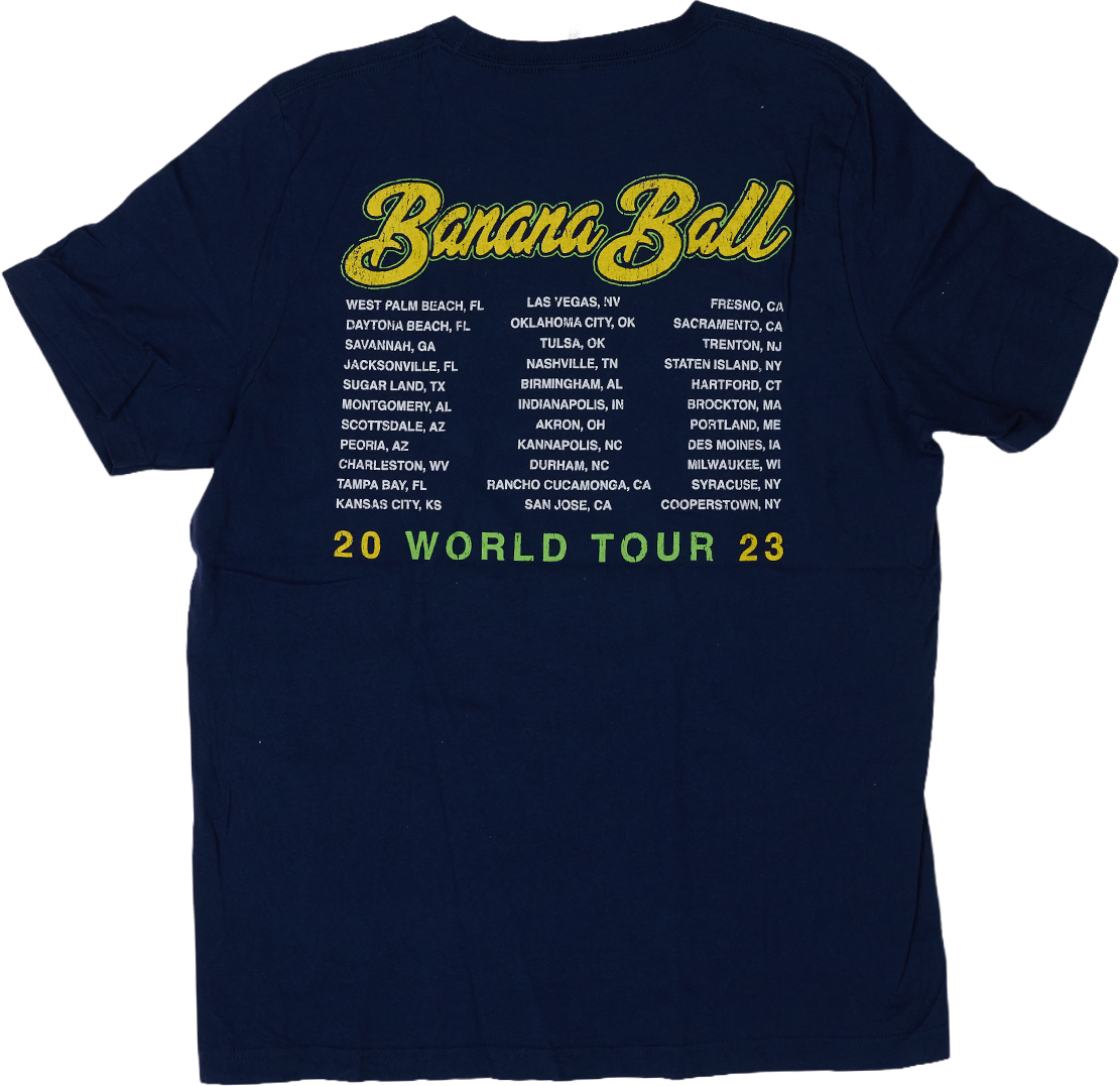 アメリカで高い人気を誇るエンターテインメント野球チーム「Savannah Bananas(サバンナ・バナナズ)」の2023年ワールドツアーTシャツ。