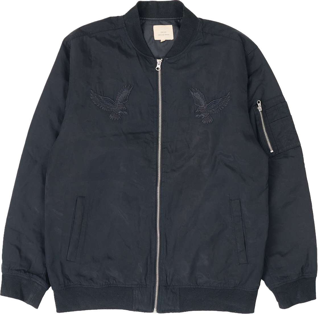フロントおよびバックに施されたイーグル(鷹)の刺繍が強い存在感を放ち、