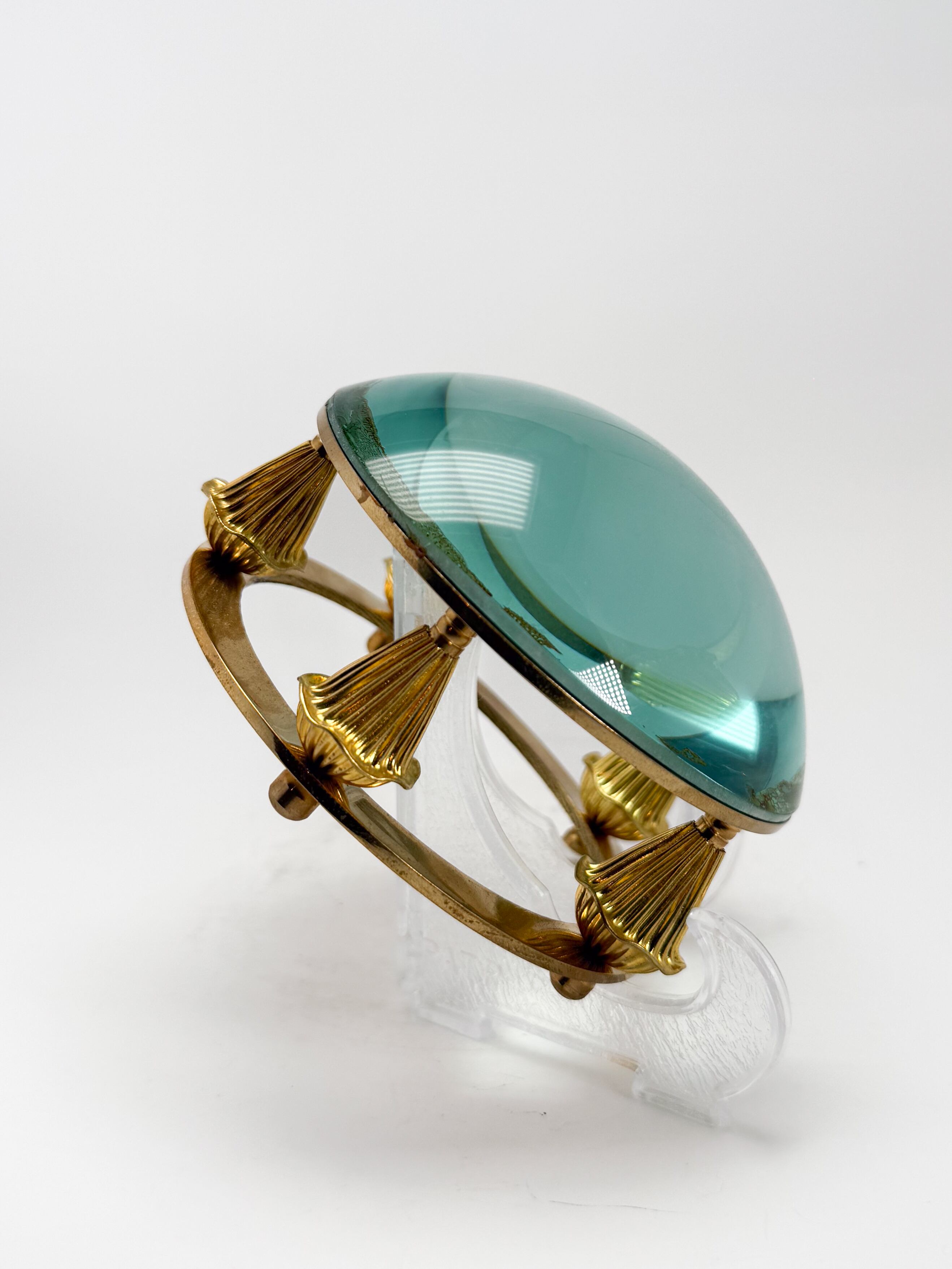 無垢の真鍮が放つ鈍い光沢と、手馴染みの良い滑らかな曲線美が、単なる拡大鏡を超えた実用的なアートピースとしての存在感を放っています。
