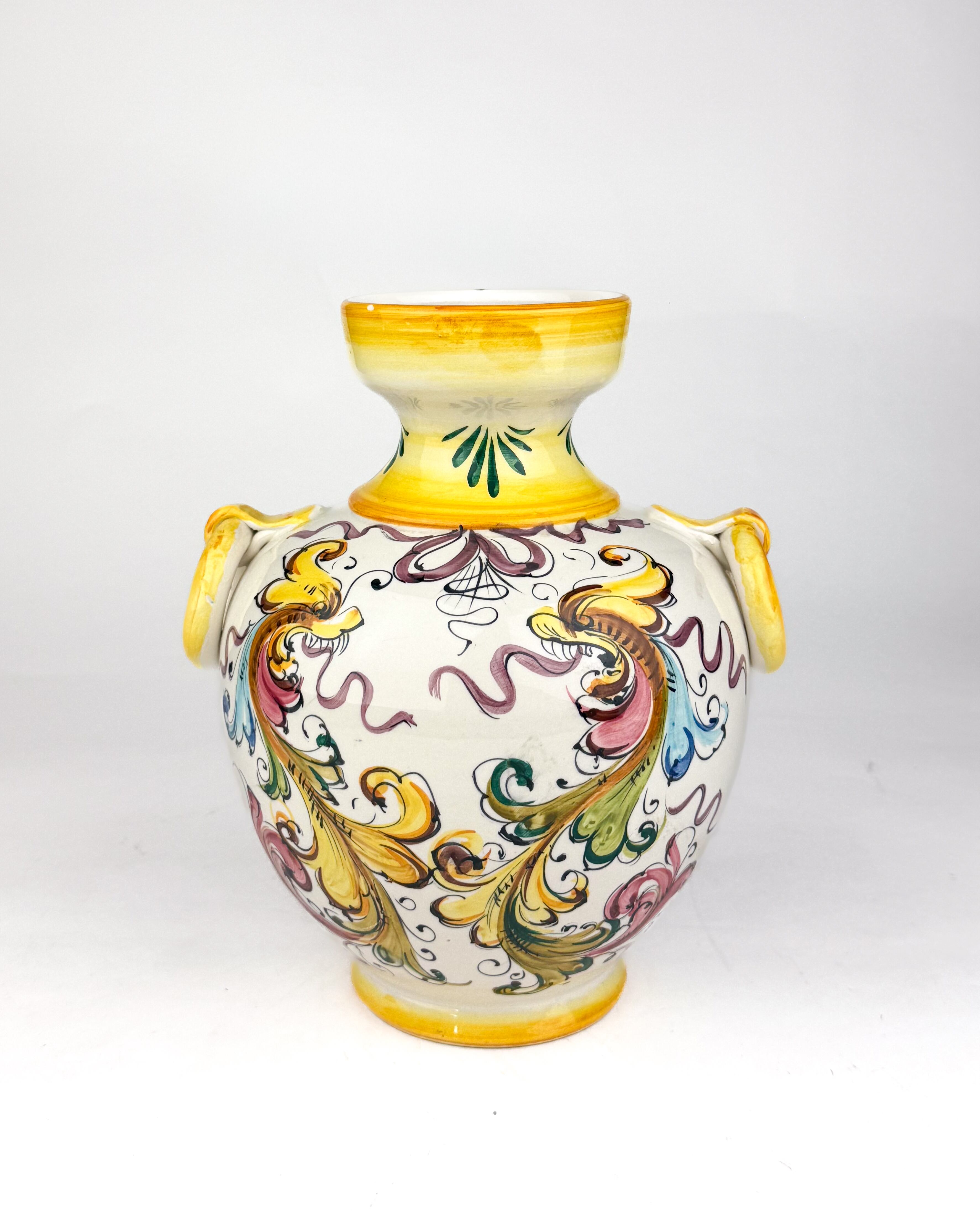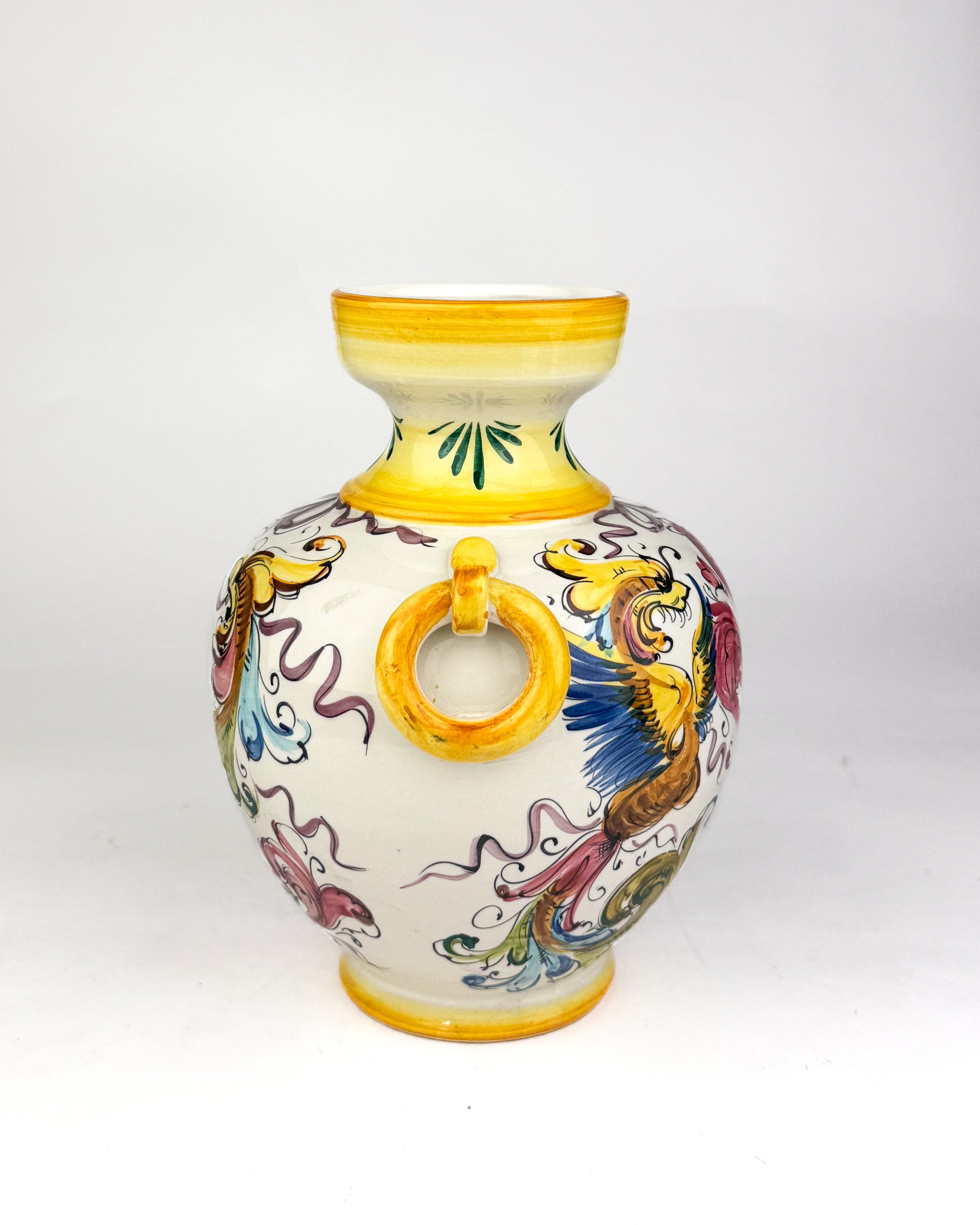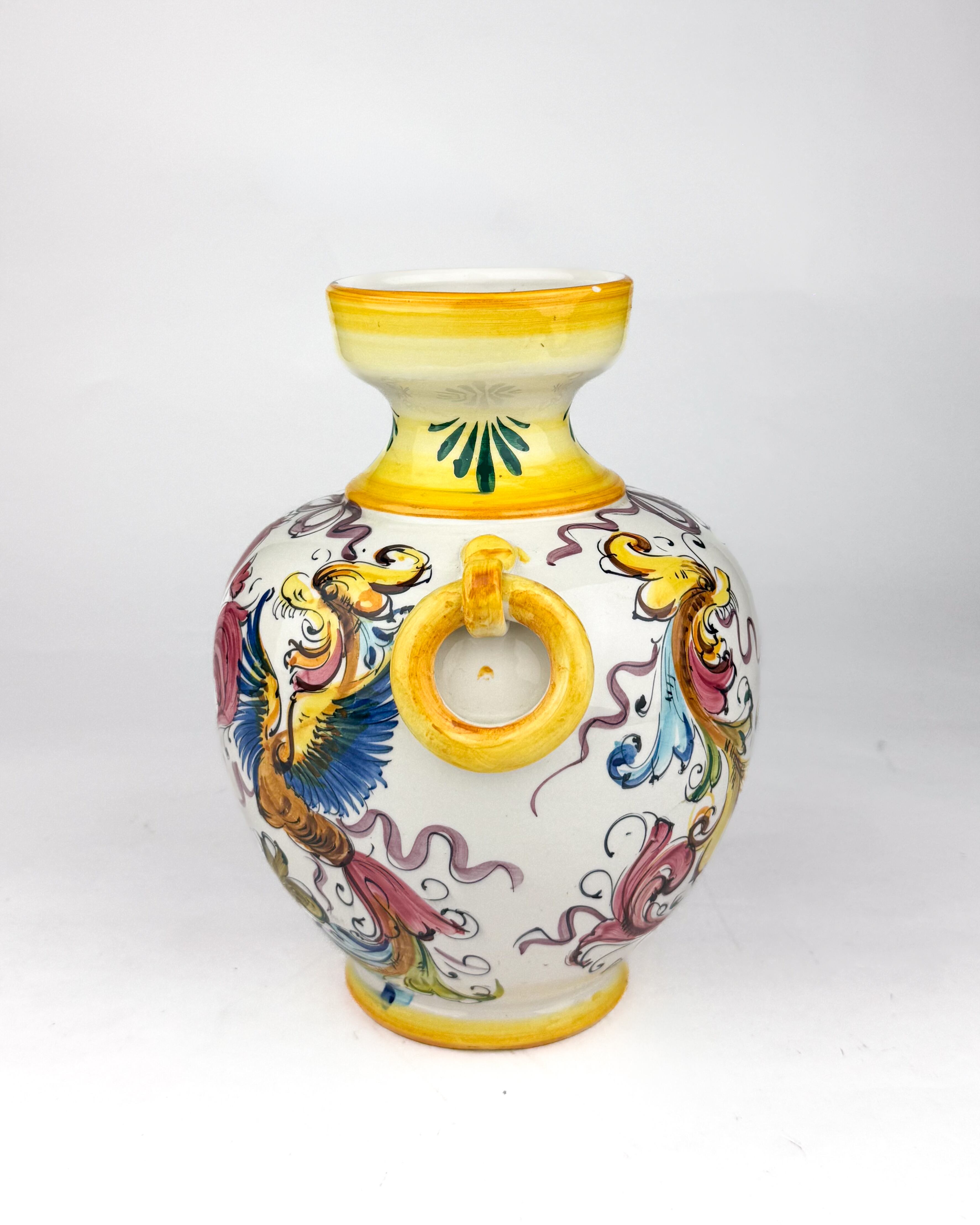 イタリア製と見られる、マジョリカ焼のフラワーベースです。