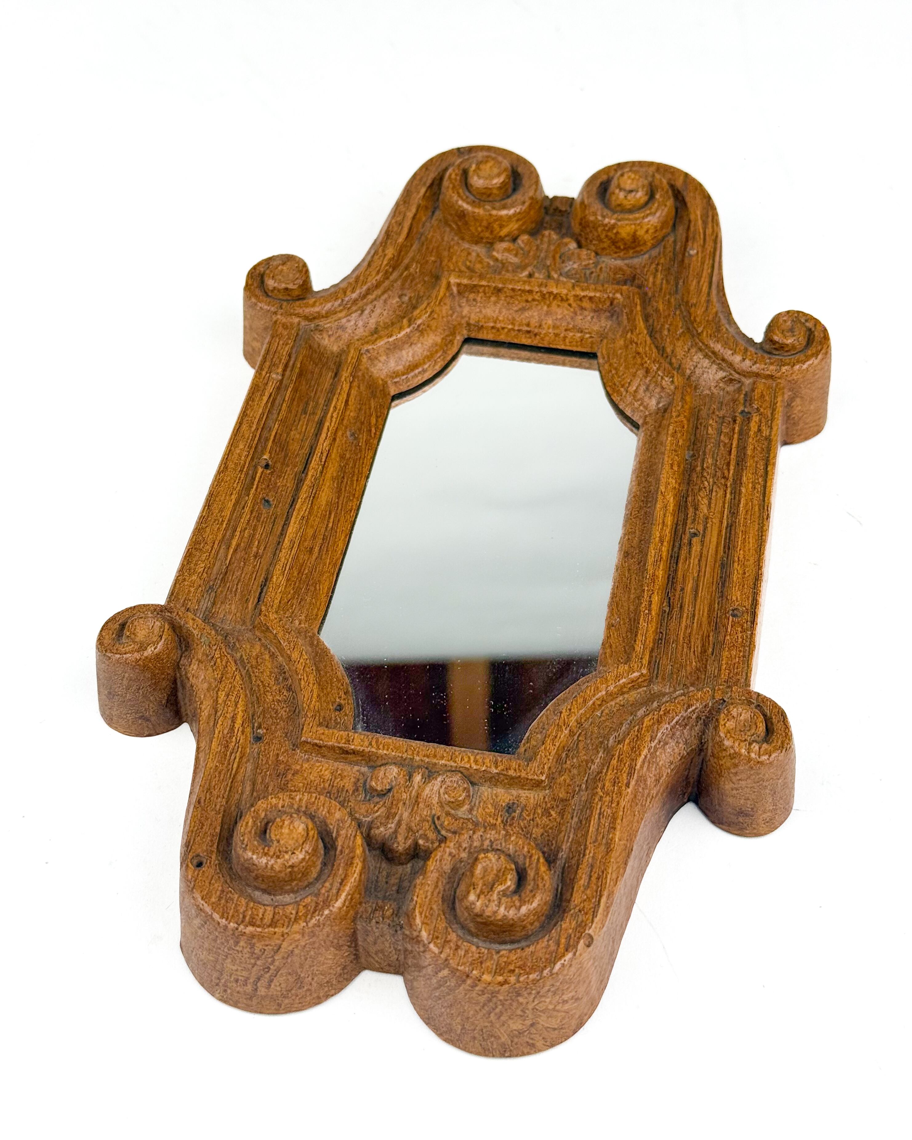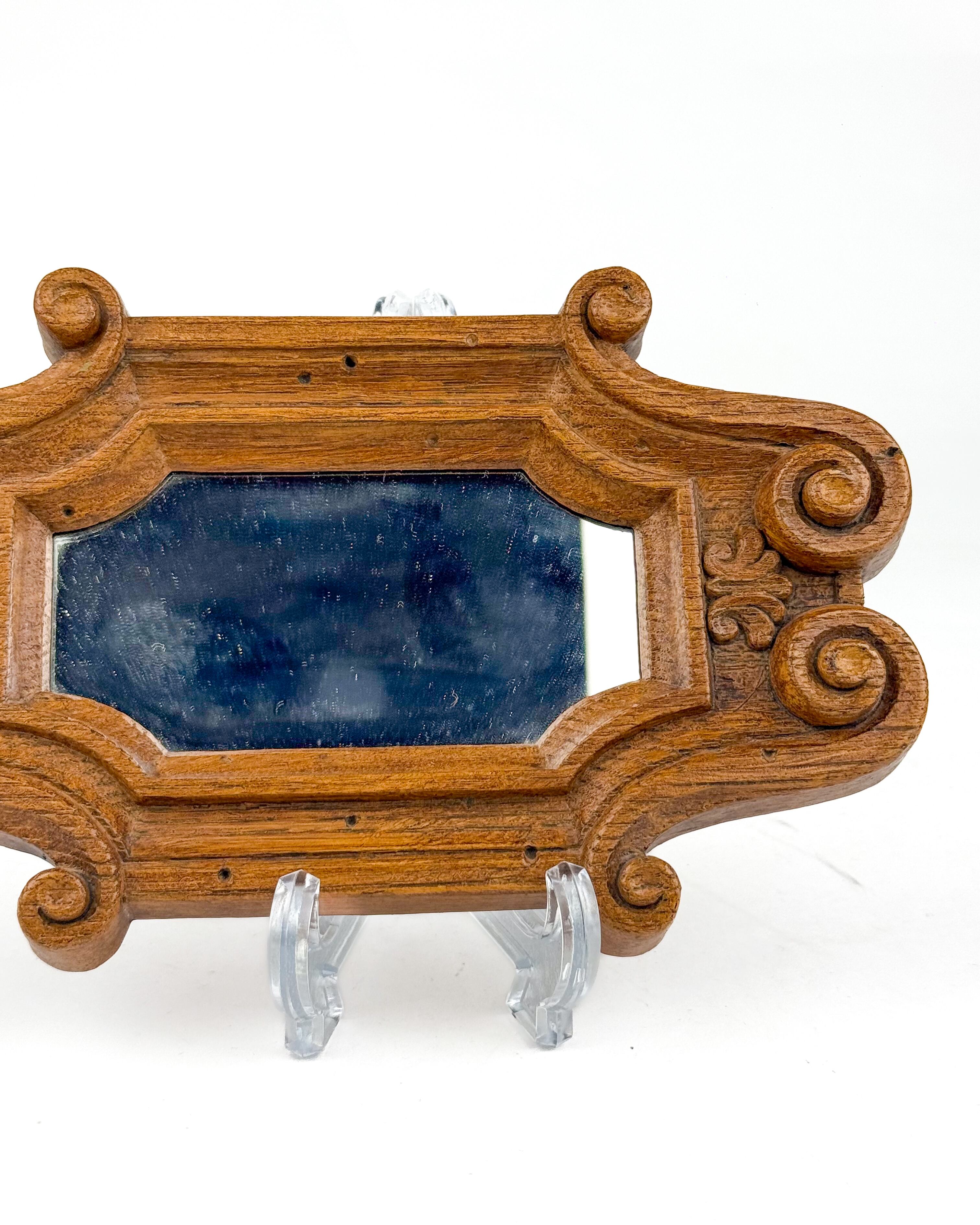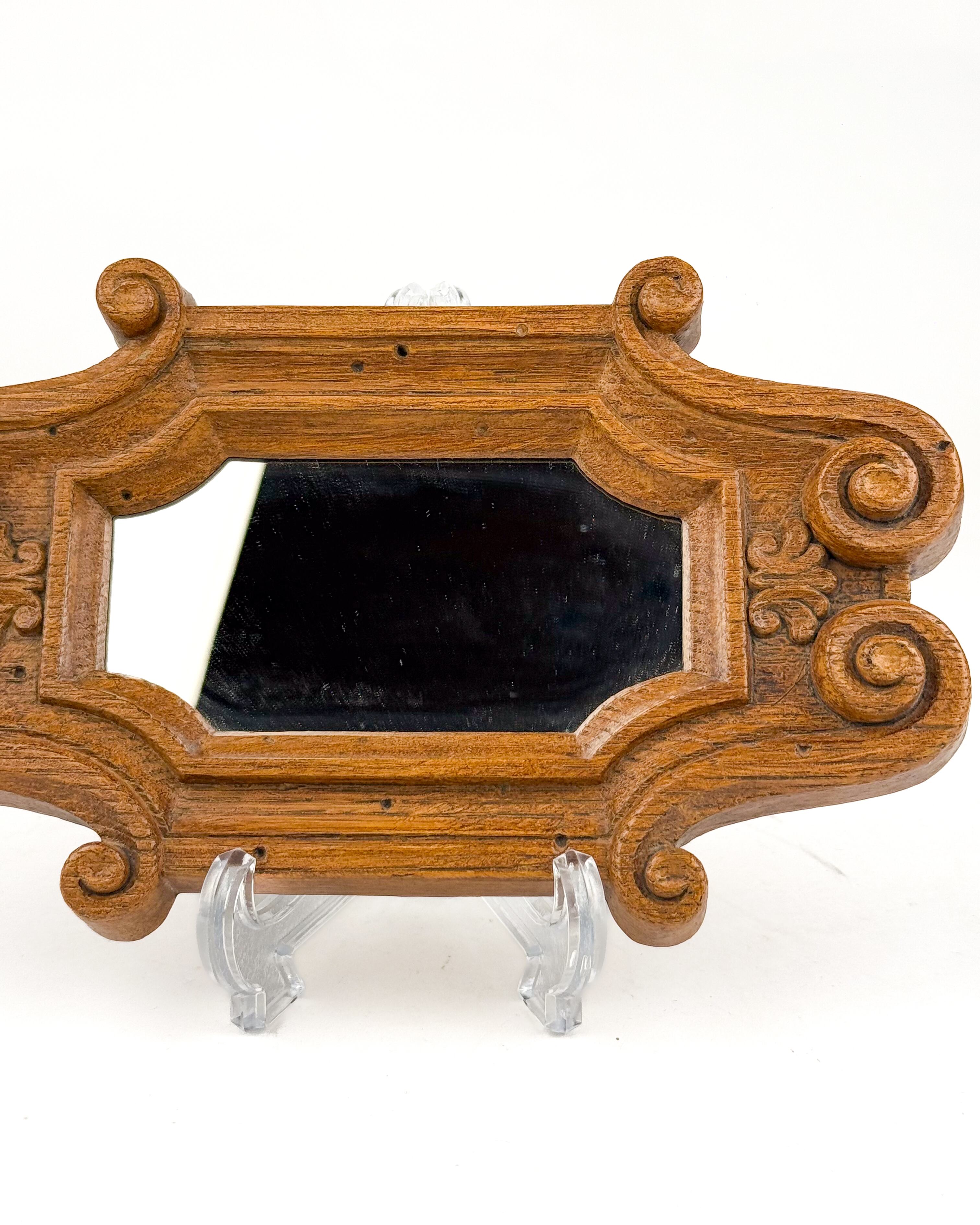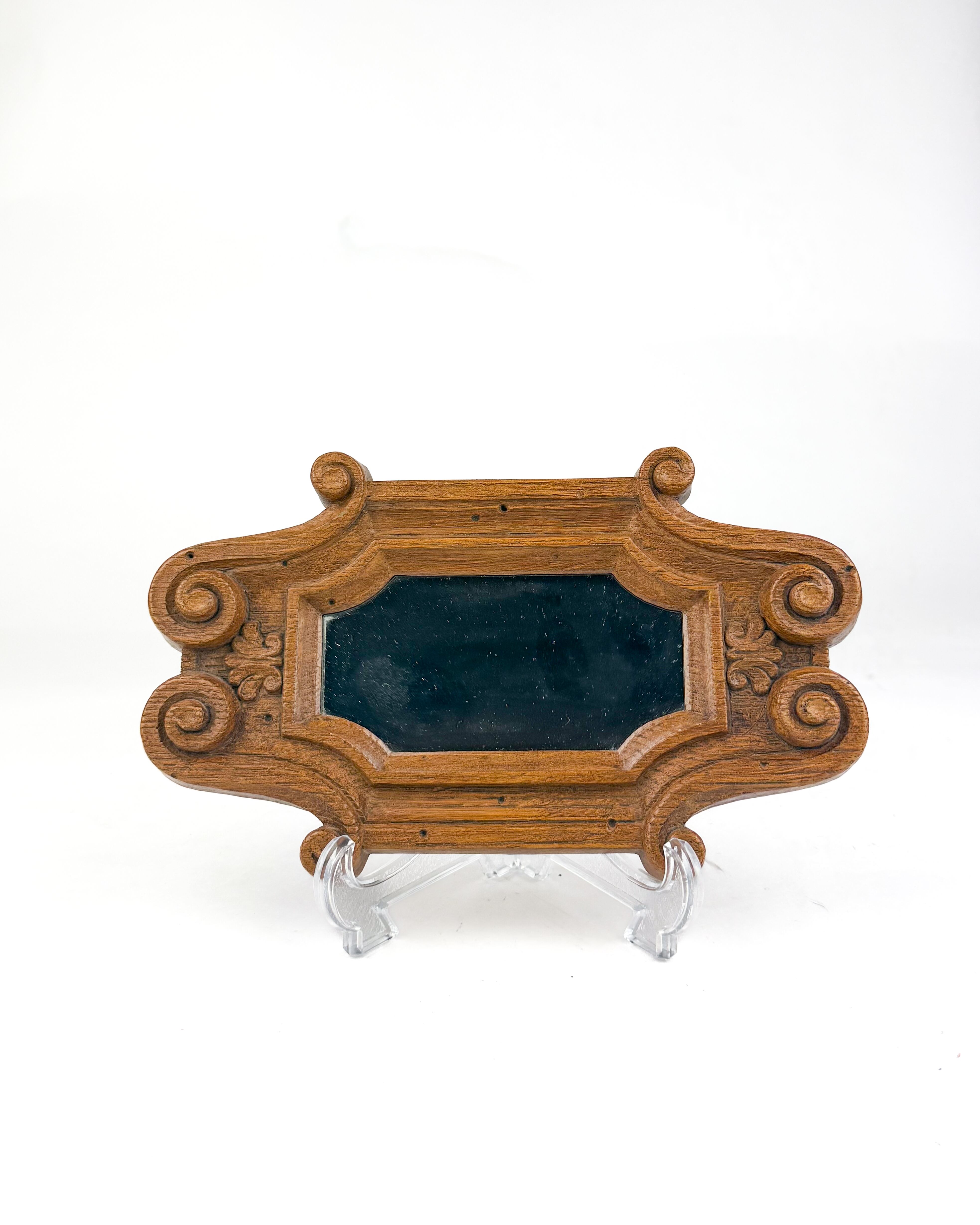 装飾的なフレームデザインが特徴で、スクロール(渦巻き)モチーフを取り入れたクラシカルな雰囲気があります。木彫のような立体感のある仕上がりですが、軽量な素材で作られているため扱いやすい点も魅力です。