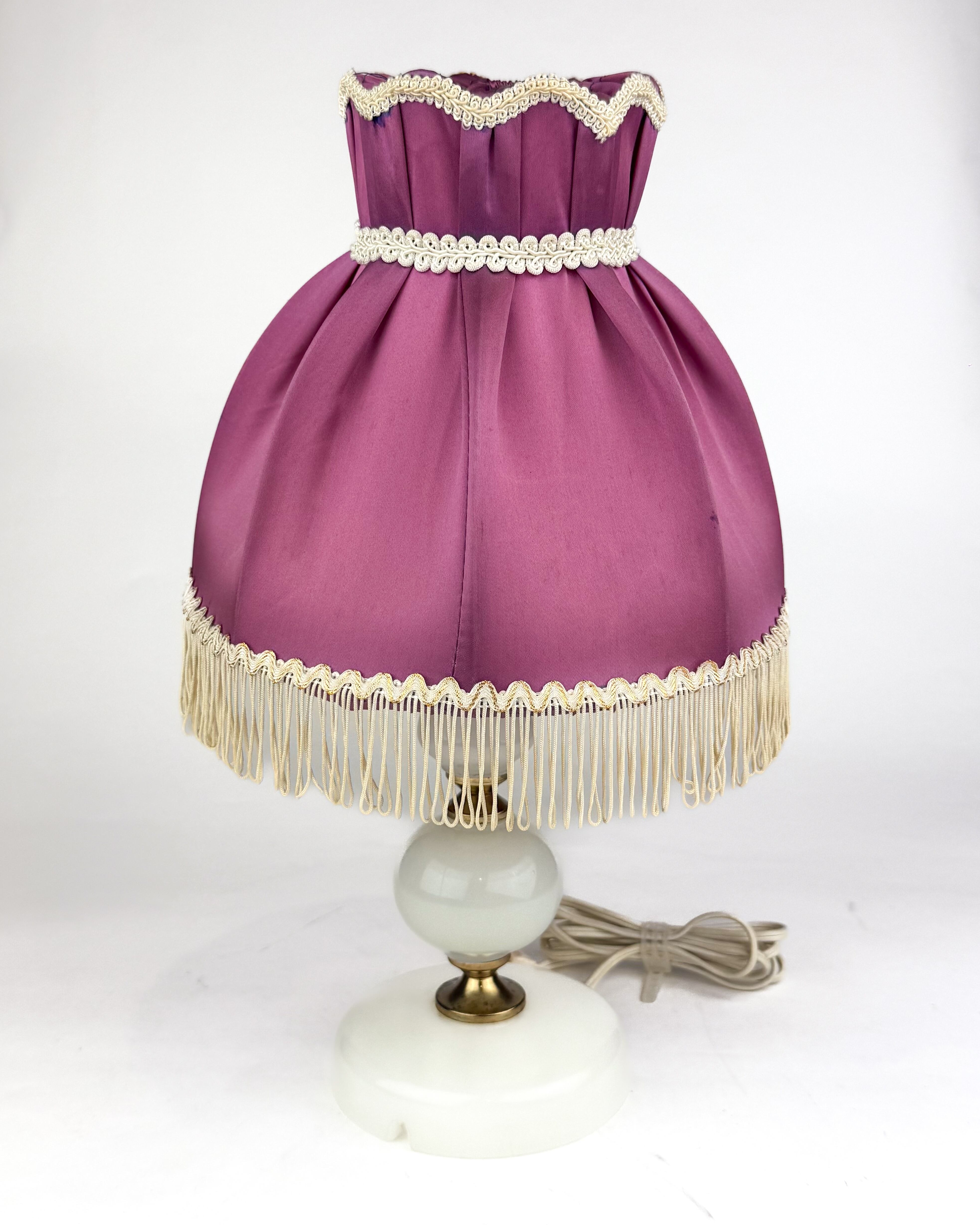 フリンジ装飾が施された、ヴィンテージのテーブルランプです。