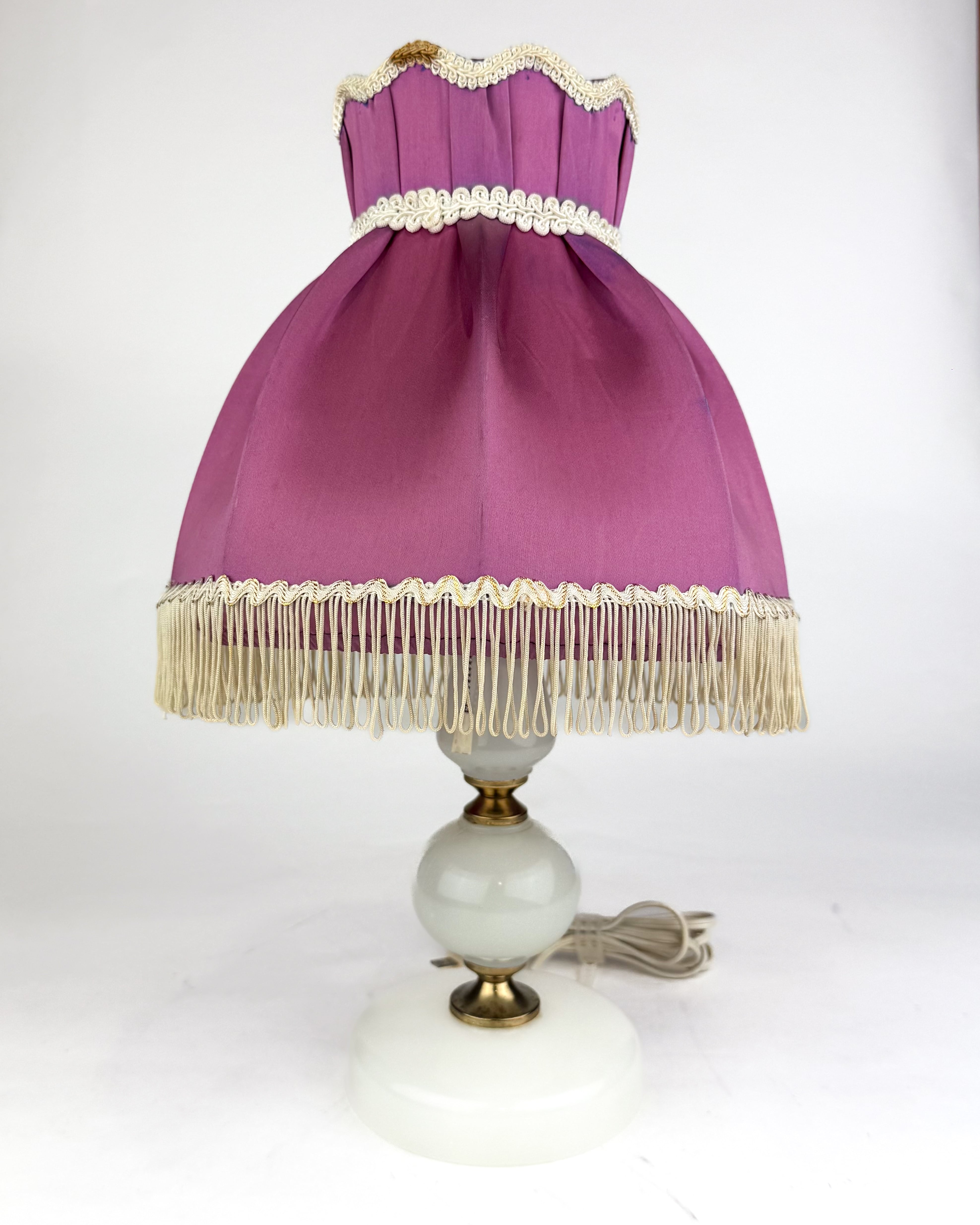 ヴィンテージ フリンジ付き テーブルランプ(ピンクシェード)