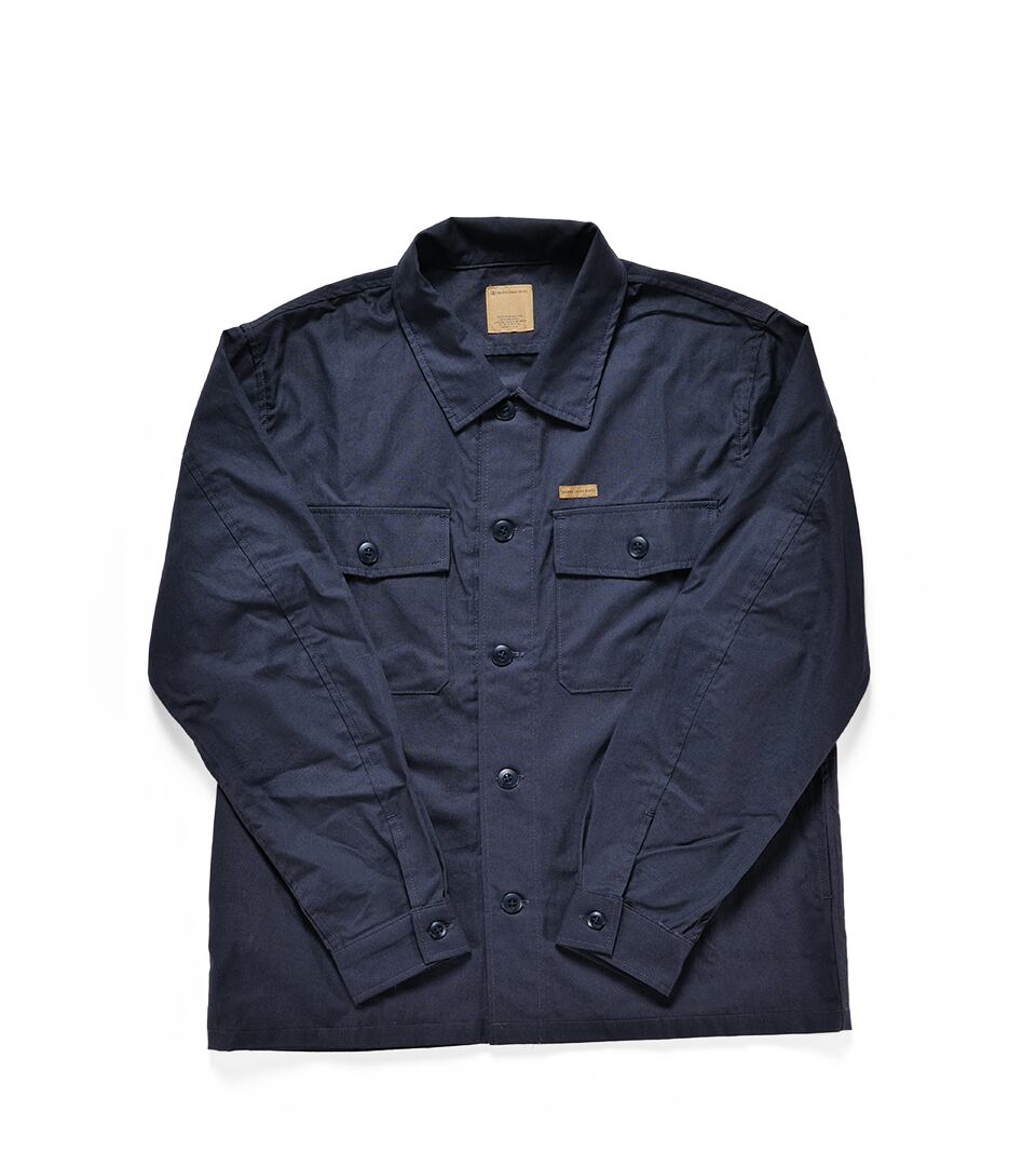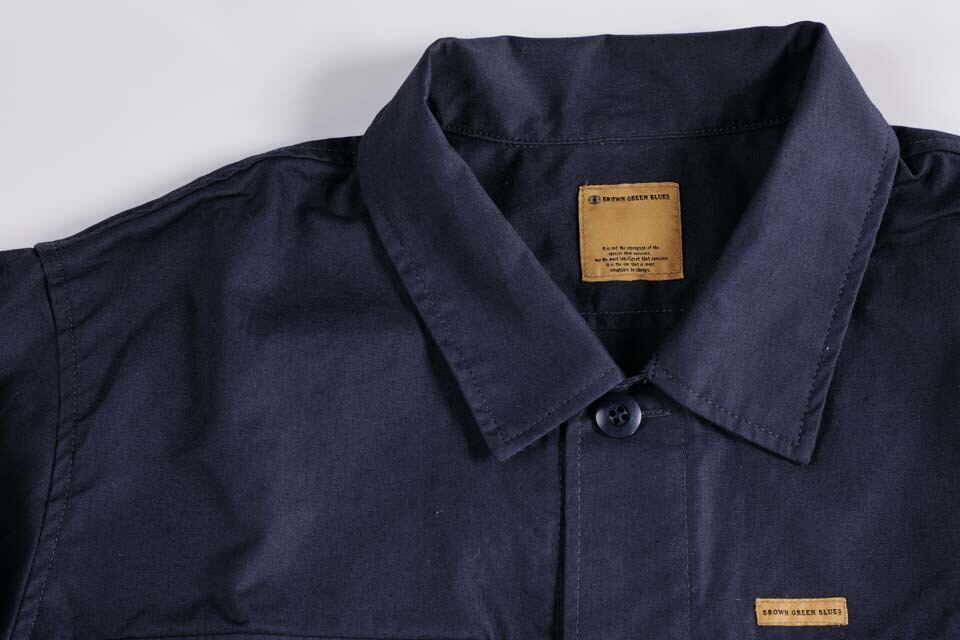 BROWN GREEN BLUES MILITARY WEATHER SLASH POCKET SHIRTSは、USミリタリーの俊作フィールドジャケットM1943に使用されていた生地を再現した生地を使用しています。