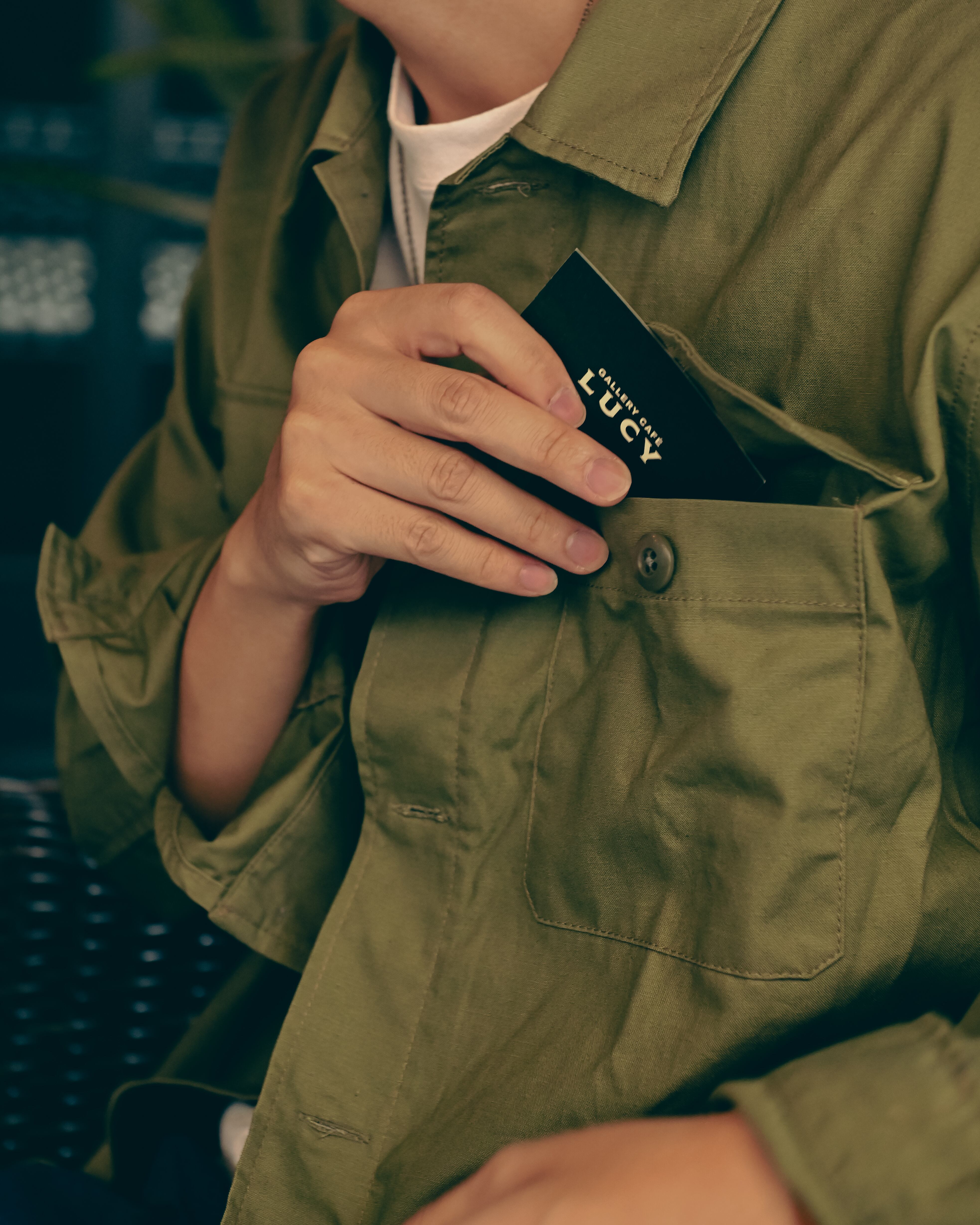大きなフラップポケットとサイドシームポケットが特徴で、ジャケットのようなスタイリッシュな印象を与えます。