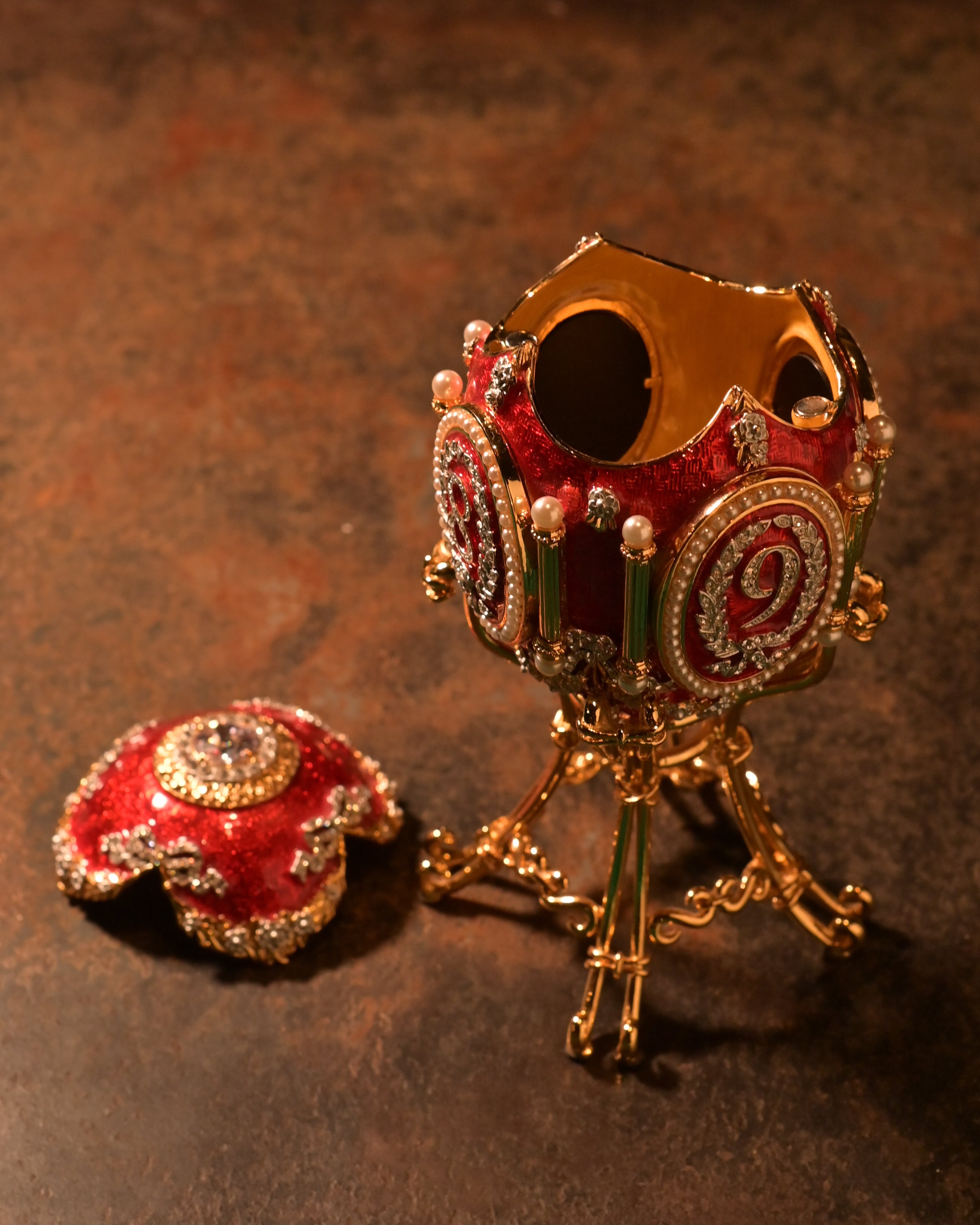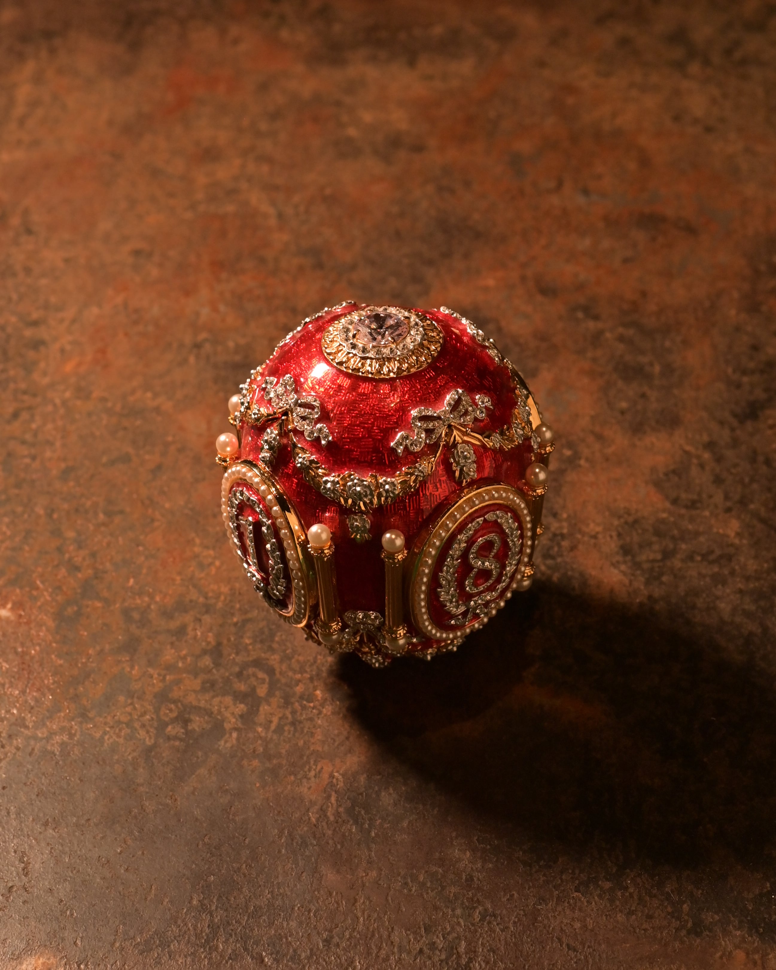 ロシア・ロマノフ王朝時代のファベルジェ風装飾を再現。